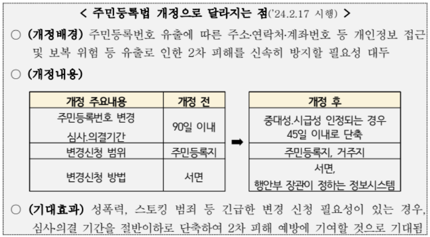 행정안전부, 긴급보호가 필요한 사람의 주민등록번호 변경 45일 이내로 단축