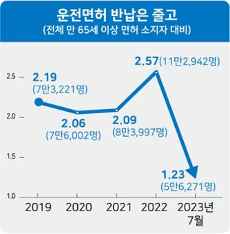 고령자를 대상으로 운전면허증 반납제도도 현재 운영하고 있습니다. 전국적으로 지자체에서 실제 면허증을 반납하게 되면 적게는 10만원에서 많게는 30만 원까지 운전면허증 반납제도를 운영하고 있습니다. 하지만 이렇게 운영되고 있지만 결과는 좋지 않습니다.