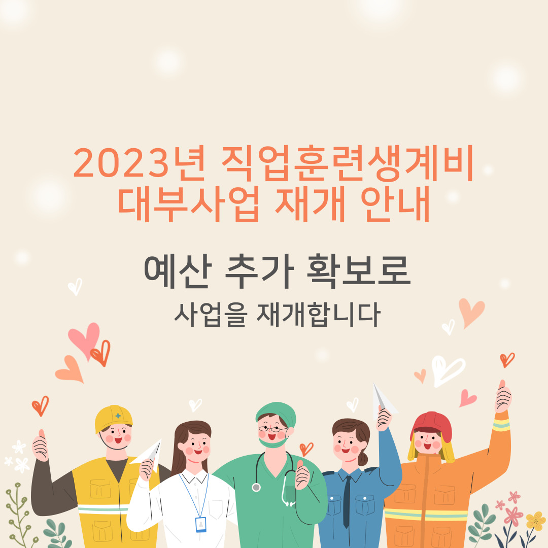23년이 얼마 남지 않았는데요. 아직 예산이 남아있는 지원금도 있습니다. 하지만 대부분 사람들은 이미 예산이 소진되었다고 생각하고 그냥 체념해 버리시는 분들이 계십니다. 올해 23년은 직업훈련생계비 대부사업이 조기에 소진되었는데 8월에 예산을 편성했기 때문에 아직도 예산이 남아 지원받을 수 있습니다. 근로복지공단에서 지원하고 있는 최대 1,000만 원까지 연 1%의 금리로 대출이 되는 제도입니다. '직업훈련생계비대부'라는 제도입니다.