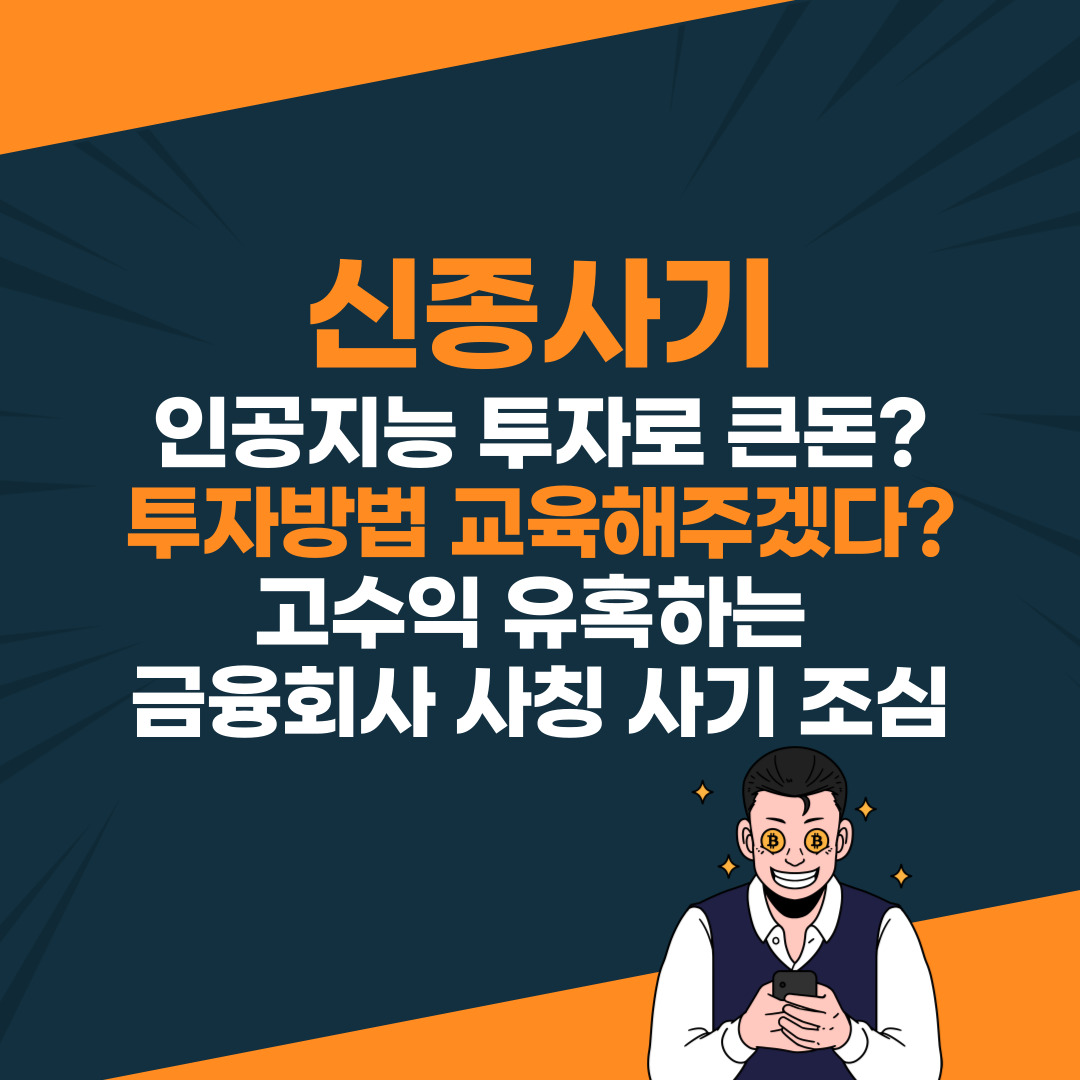 금융감독원 신종사기 발표 / 인공지능을 통해 투자해 큰 돈? / 투자 방법 교육해주겠다? / 고수익 유혹하는 금융회사 사칭 조심