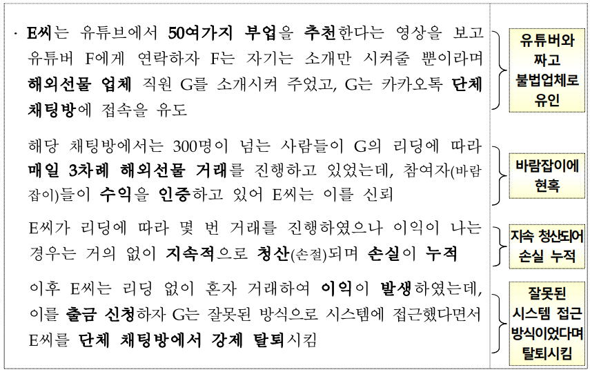 3) 선물거래를 위한 대여계좌 이용은 불법이므로 단호히 거절하세요.