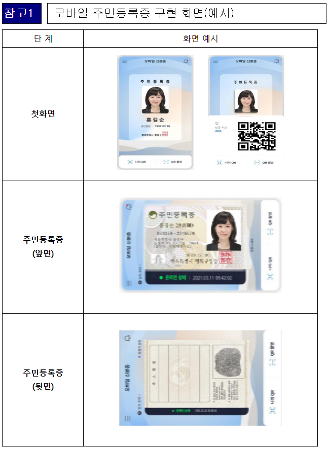 '주민등록법' 개정안이 국회를 통과하면, 1년의 준비기간을 거쳐 빠르면 내년 하반기부터 모바일 주민등록증을 발급받을 수 있습니다. 위의 안내드린 내용 잘 기억해 두셨다가 편리하게 이용하시기 바랍니다.