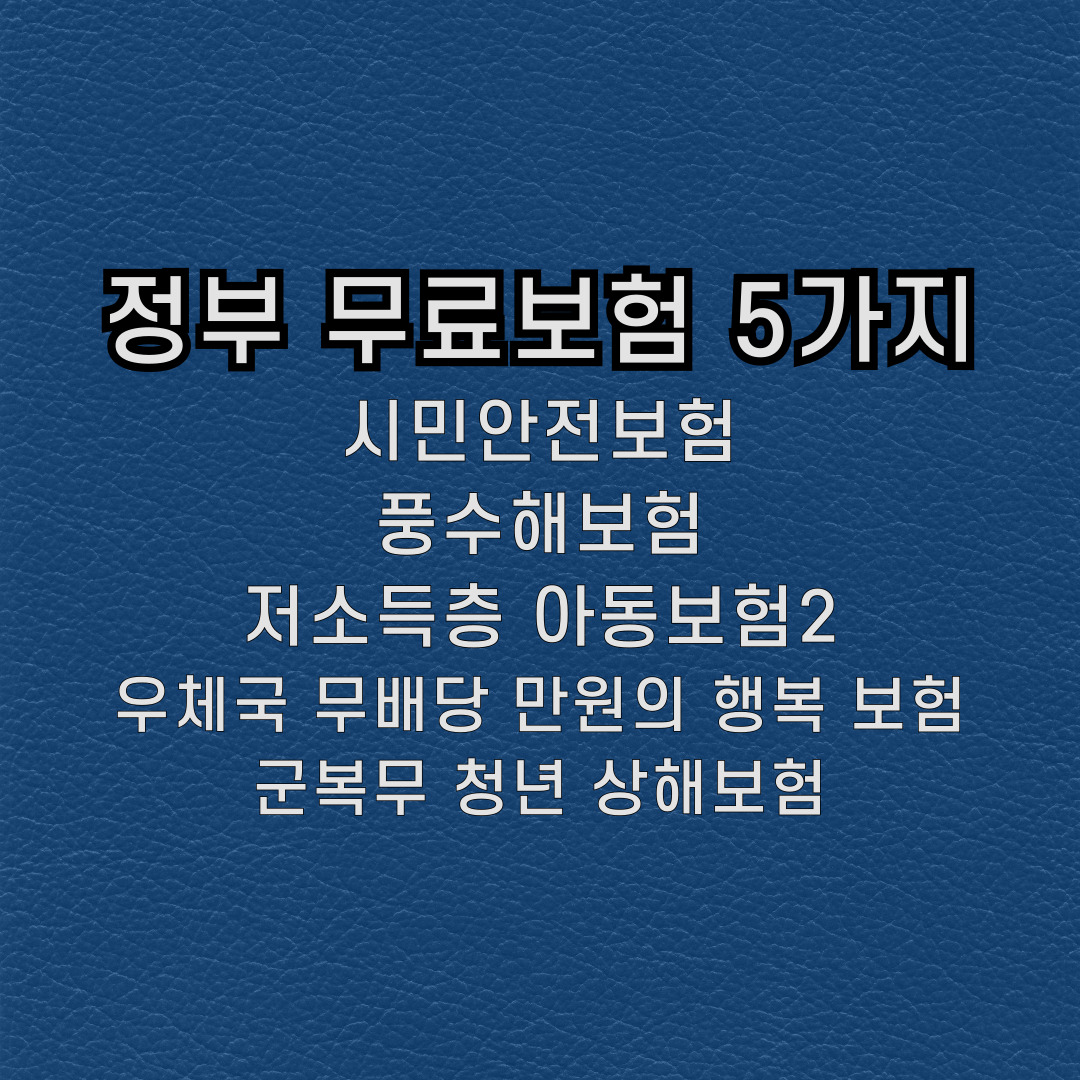 정부 무료보험 5가지 / 중복 혜택 가능 / 시민안전보험 / 풍수해보험 / 저소득층 아동보험2 / 우체국 무배당 만원의 행복 보험 / 군복무 청년 상해보험