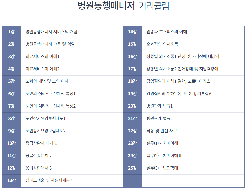 병원동행매니저 커리큘럼과 취득방법