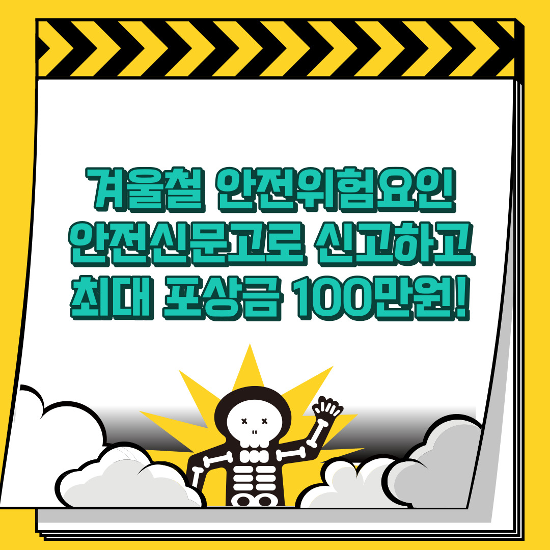 겨울철 안전위험요인이 증가사는 시기에 국민이라면 누구나 안전신문고로 신고해 주시고 포상금도 받으시기 바랍니다.