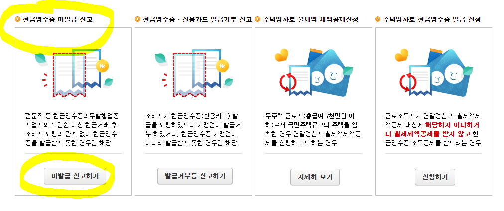 현금영수증 미발급 신고 버튼 클릭하여 신고합니다.