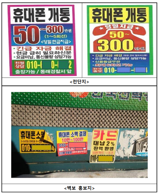 길거리나 어디서든지 광고, 전단지에서 [내구제대출, 저신용자 누구나 가능, 비대면 간편하게 고액전문, 선불유심내구제] 라고 하는 것을 본다면 이것이 바로 휴대폰을 개통해서 넘겨주면 돈을 주겠다고 하는 사기광고이니 바로 피하셔야 합니다. 절대로 내 명의로 휴대전화를 개통해서 유심을 넘겨주면 안 됩니다.
