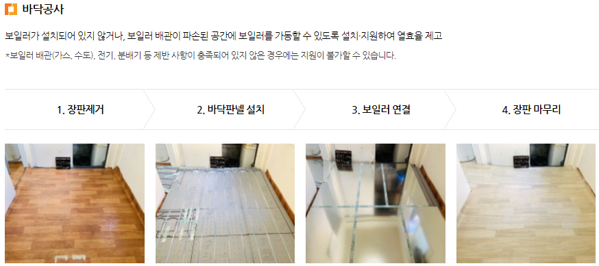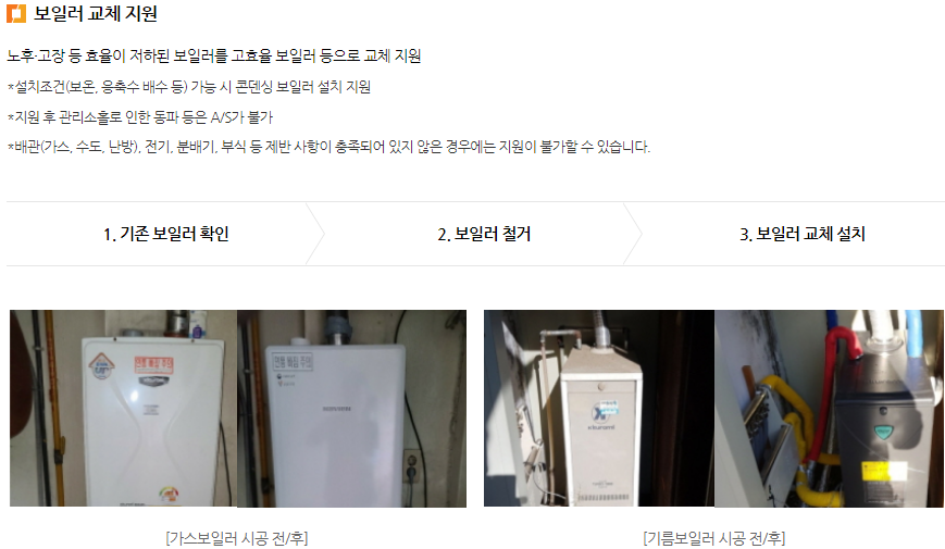 ▶ 효율개선 시공 지원 : 단열공사 / 창호공사 / 바닥공사 / 보일러 교체 지원