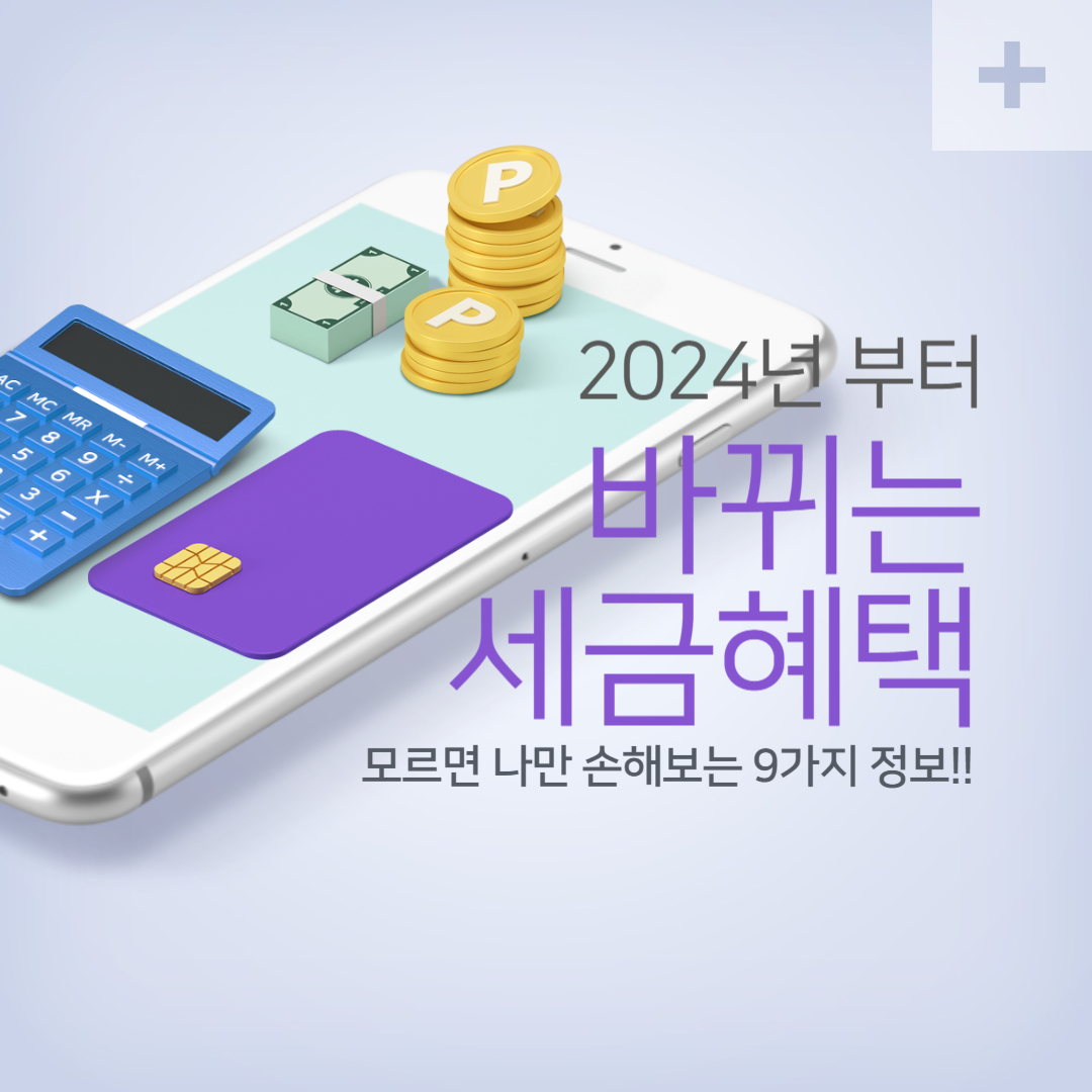 내년부터 여러 가지 세금혜택이 달라집니다. 하지만 이 세금문제, 내가 직접 찾아보고 알아보지 않으면 아무도 알려주지 않습니다. 그래서 24년부터 달라지는 세금혜택 9가지에 대해 간단히 요약해 보았습니다.