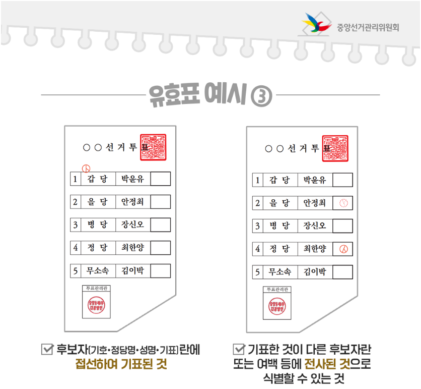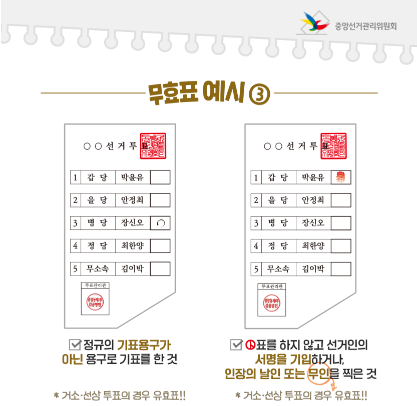 2) 표를 한 후 문자 또는 기타 기입하면 무효 / 표를 하고 이름(문자) 쓰면 무효
