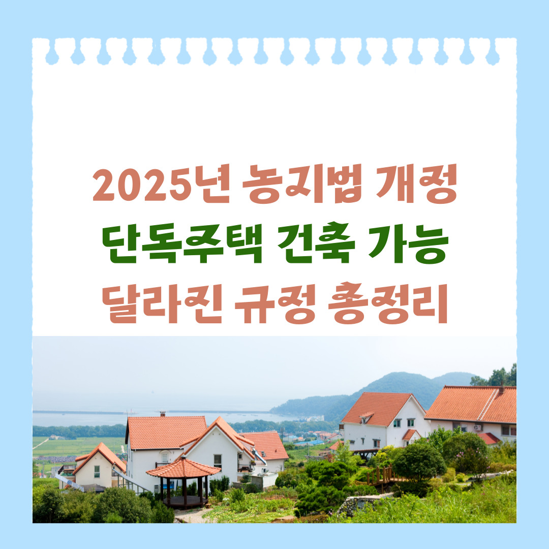 이번 농지법 개정은 단독주택 건축뿐만 아니라 농업 환경 개선과 농촌 경제 활성화를 위한 다양한 규정이 포함되었습니다.