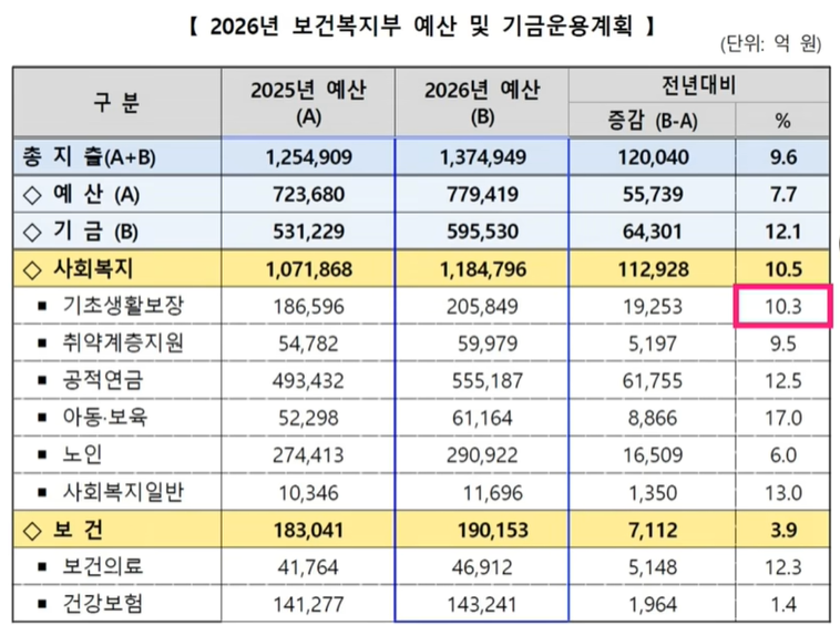 내년도 기준중위소득 금액이 오르면서 수급자 기준 자체가 상향됩니다. 이로인해 수급자 수도 4만명 정도 늘어나게 됩니다. 그래서 기초생활보장에 대한 연예산이 10%가량 늘어나는 겁니다.