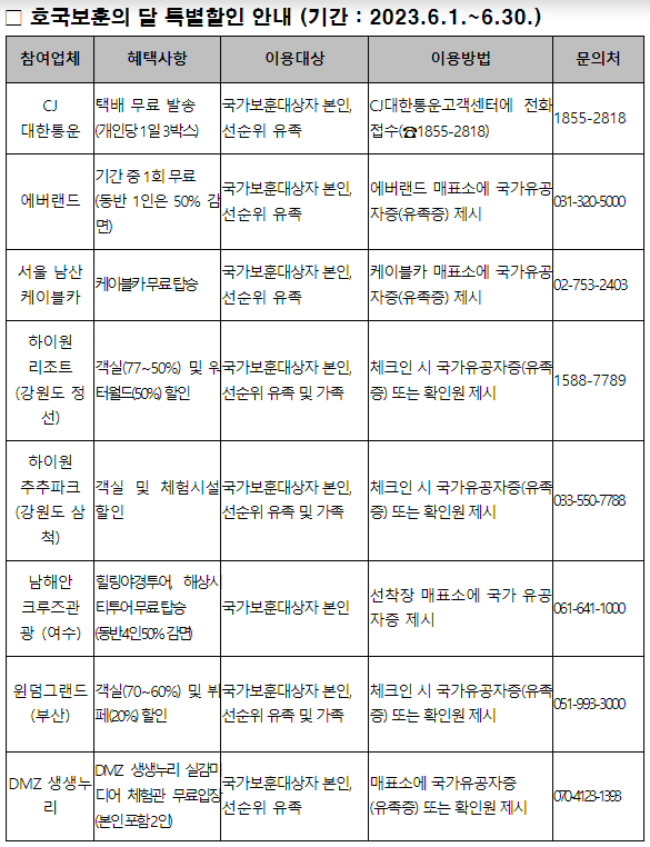 6월 보훈가족 특별 혜택 / 숙박, 교통 할인받고 국내 여행 즐기세요