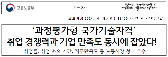 과정평가형 국가기술자격증 관련 정부 보도자료 발표