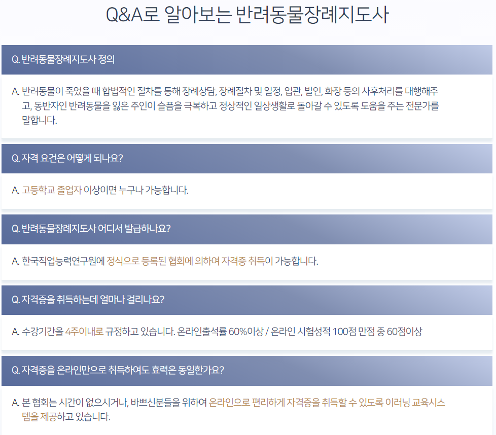자격증을 취득 할 수 있는 [한국자격검정평가진흥원] 사이트에 들어가시면 반려동물장례지도사 1급 취득이 무료로 가능합니다.