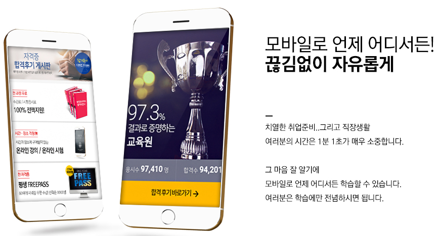 많은 분들이 거리가 멀거나 시간이 없는 분들도 많습니다. 그래서 온라인으로 자격증을 취득할 수 있도록 이러닝 교육시스템을 제공하고 있습니다. PC(컴퓨터)도 가능하고 스마트폰에서도 언제 어디서나 수강을 할 수 있으며 쉽게 자격증을 취득할 수 있습니다.