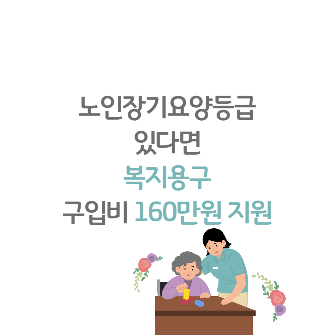 65세 이상 어르신분들은 노인성 질환이 많습니다. 이럴 때 160만 원 매년 복지용구 혜택을 받을 수 있다고 합니다. 하지만 노인장기요양등급이 있으셔야 복지용구를 구입하실 때 160만원의 지원을 받을 수 있습니다.