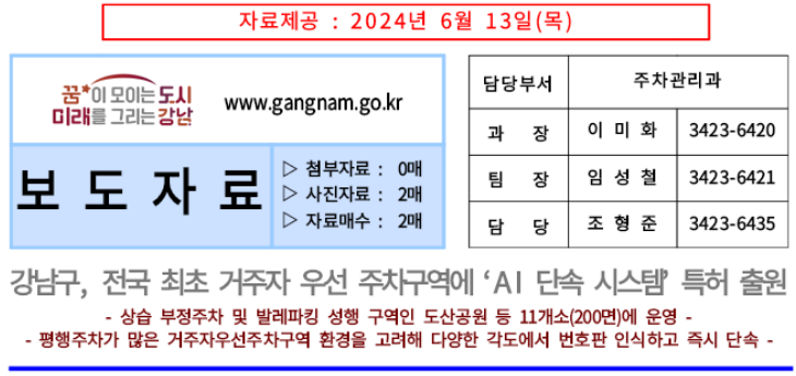 AI 단속 시스템 강남구 최초 특허 출원