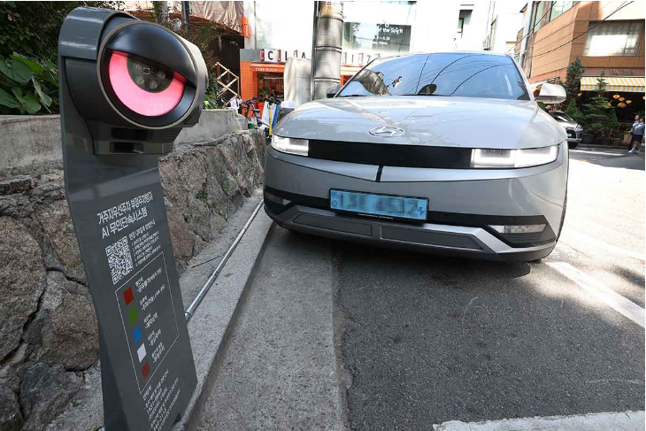 위 사진에 나와있는 AI 카메라를 통해 차를 자동으로 인식합니다. AI 기술로 차량 번호를 식별하는데 다양한 각도에서 번호판을 판독할 수 있습니다. 정면이 아니더라도 비스듬하게라도 보이면 다 식별이 가능합니다. 보도자료에 따르면 부정 주차가 발생하는 즉시 단속하고 차량번호를 관리자에게 자동 전송함으로써 사용료 부과와 견인 조치를 빠르게 진행할 수 있습니다.