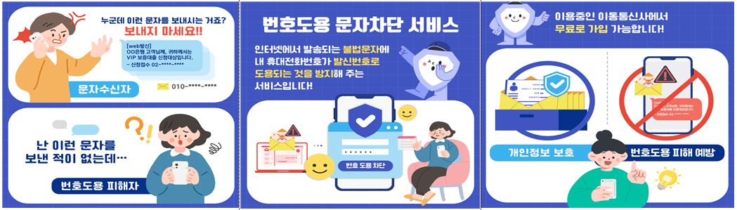 이통 3사와 KISA는 '번호도용문자 차단서비스'를 부가서비스 형태로 무료로 제공하고 있으며, 시스템 개선을 통해 이용자가 '번호도용 차단 서비스'신청 즉시 번호도용 차단이 가능하도록 개선하며, 차단서비스 이용률 제고를 위해 홍보를 강화할 예정이다.